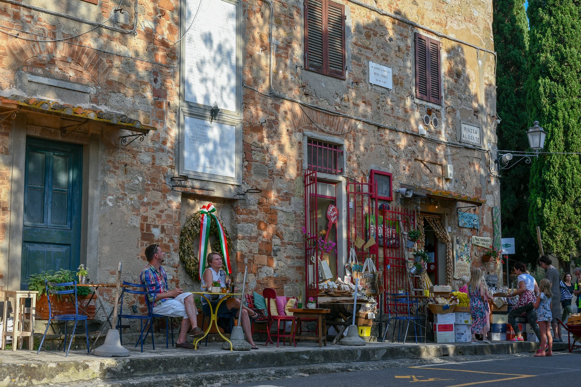 A midi, vous pouvez faire une halte gourmande à “Alimentari Muccioli”, boutique folklorique proposant d’excellents produits du terroir avant de rejoindre Bolgheri dans la région côtière toscane. Bolgheri est le village italien qui a donné son nom à l’appellation d’origine contrôle du vin Bolgheri !